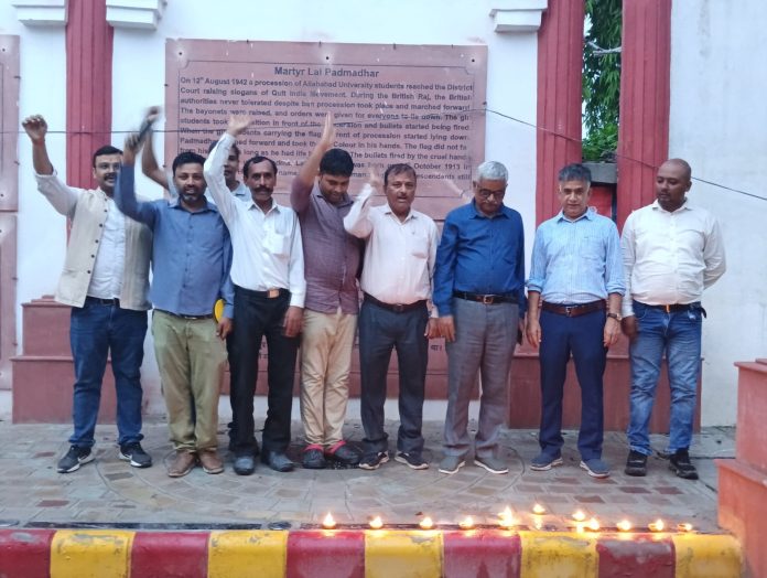 प्रयागराज। कई साल बाद आज 9 अगस्त को अगस्त क्रांति के शहीदों को नमन करने के लिए शहीदवॉल पर “एक रोशनी शहीदों के नाम” जलाई गई। भारत माता की जय के नारे के साथ कार्यक्रम संपन्न हुआ।