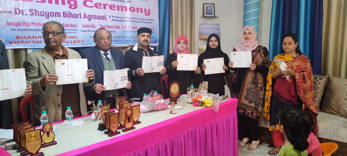 प्रयागराज। खानम आर्ट गैलरी में डॉ जाहिदा खानम की चल रही 15 दिवसीय चित्रकला प्रदर्शनी के अंतिम दिन 10:00 बजे कला मेले का शुभारंभ भी हुआ। इस मौके पर मुख्य अतिथि रहे श्याम बिहारी अग्रवाल ने कला में प्रकृति के महत्व को बताया और कला मेले का उद्घाटन किया।