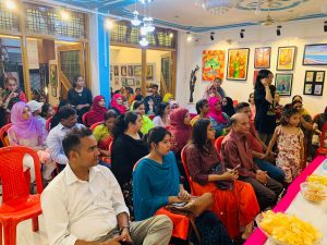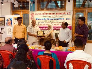 मुख्य अतिथि खानम आर्ट गैलरी की निदेशक डॉ. जाहिदा खानम ने राज्य ललित कला अकादमी के ग्रीष्मकालीन कला कार्यशाला के प्रदर्शनी का किया उद्घाटन