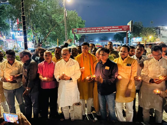 पहलगांव मृतकों को एक रौशनी जलाकर दी गयी श्रद्धांजलि