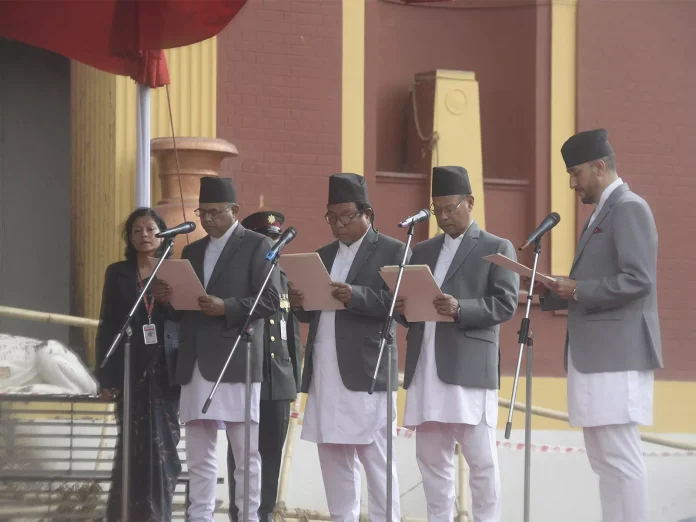 काठमांडो। नेपाल की अंतरिम प्रधानमंत्री सुशीला कार्की ने सोमवार को अपने मंत्रिमंडल में चार मंत्रियों की नियुक्ति की, जिन्हें राष्ट्रपति राम चंद्र पौडेल ने शपथ दिलाई। पूर्व न्यायाधीश अनिल कुमार सिन्हा को तीन उद्योग, वाणिज्य और आपूर्ति मंत्रालय, कानून-न्याय मंत्रालय और भूमि सुधार तथा सहकारिता व गरीबी उन्मूलन के 3 मंत्रालय सौंपे गए। महावीर पुन को शिक्षा- विज्ञान एवं प्रौद्योगिकी, मदन प्रसाद परियार को कृषि मंत्री व जगदीश खरेल को सूचना मंत्री नियुक्त किया है।