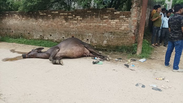 स्थानीय लोगों ने बताया कि बिजली का तार काफी समय से नीचे लटका हुआ था, जिसकी शिकायत कई बार विद्युत विभाग से की गई थी, लेकिन कोई कार्रवाई नहीं हुई। सोमवार सुबह जब एक युवक और भैंस जा रहा था तो वह तार की चपेट में आ गई। तेज करंट लगने से भैंस की मौके पर ही मौत हो गई, जबकि युवक को भी करंट लगा। गनीमत रही कि वह जान बचाकर पीछे हट गया।