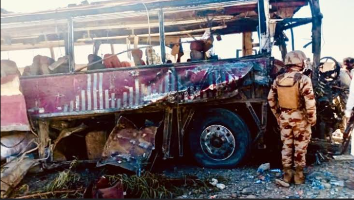 इस्लामाबाद। पाकिस्तानी सेना के बसों के काफिले पर बलुचिस्तान लिबरेशन आर्मी (बीएलए) के फिदायीन हमले में फ्रंटियर कोर (एफसी) के कई जवानों की मौत हो गई और 35 से अधिक घायल हैं। घटनास्थल से आई तस्वीरों में एक बस पूरी तरह नष्ट दिख रही है। सैनिकों का काफिला क्वेटा से ताफ्तान जा रहा था। पाकिस्तान सरकार ने अभी तक कोई आधिकारिक जानकारी साझा नहीं की है।