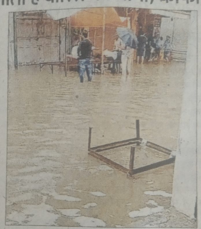 भारी जलभराव नैनी के शंकर ढाल बाजार में बारिश के दौरान हो जाता हैं