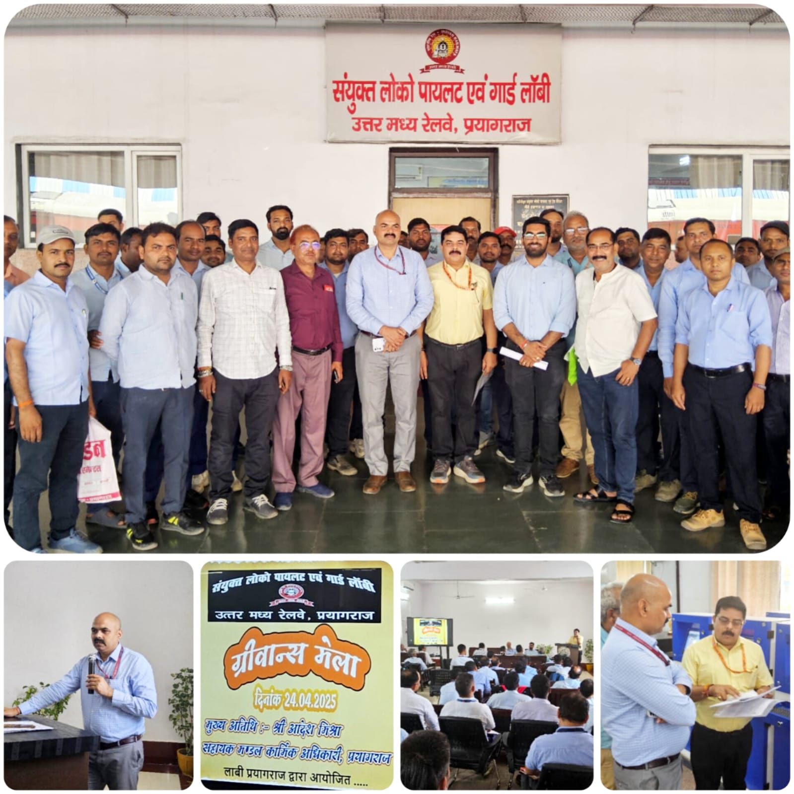 उत्तर मध्य रेलवे प्रयागराज मण्डल में रनिंग कर्मियों के वेतन भत्ता भुगतान एवं अन्य समस्याओं के निराकरण हेतु लाबी प्रयागराज में मिशन ज़ीरो ग्रीवान्स के तहत ग्रीवान्स मेला लगाया जहां लगभग 50 रनिंग कर्मचारी, 10 लोको निरीक्षकों ने भाग लिया। ग्रीवान्स संगोष्ठी के मुख्य अतिथि आदेश मिश्रा सहायक मण्डल कार्मिक अधिकारी प्रयागराज एवं रितेश लालवानी सहायक मण्डल बिजली इंजीनियर प्रयागराज उपस्थित रहे।