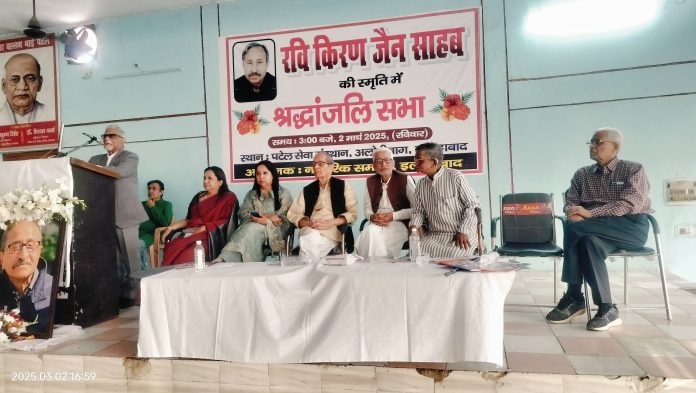 इलाहाबाद हाईकोर्ट के वरिष्ठ अधिवक्ता, पीयूसीएल के पूर्व राष्ट्रीय अध्यक्ष, नागरिक समाज के संयोजक सहित विभिन्न संगठन से जुड़े आदरणीय रवि किरण जैन साहब की श्रद्धांजलि सभा का कार्यक्रम आज नागरिक समाज के द्वारा 2 मार्च 2025 को सम्पन्न हुआ। इस कार्यक्रम में विभिन्न वक्ताओं ने अपने-अपने ढंग से उनके संस्मरण सुनाकर उन्हें श्रद्धांजलि दी।