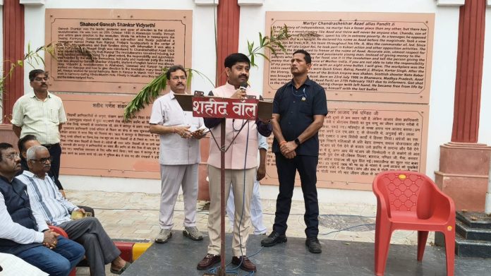 प्रयागराज। उत्तर प्रदेश सरकार में कैबिनेट मंत्री नंद गोपाल गुप्ता ‘नंदी’ और शहर उत्तरी के विधायक हर्षवर्धन बाजपेई ने रविवार को सिविल लाइंस स्थित शहीद वॉल पर पहुंचकर देश के अमर शहीदों को नमन किया। इस अवसर पर उन्होंने शहीदों की स्मृति में एक वृक्ष लगाया और एक दीप प्रज्वलित कर भावभीनी श्रद्धांजलि अर्पित की।