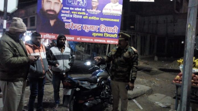 हँड़िया पुलिस ने किया चेकिंग जंघई चौराहे पर।