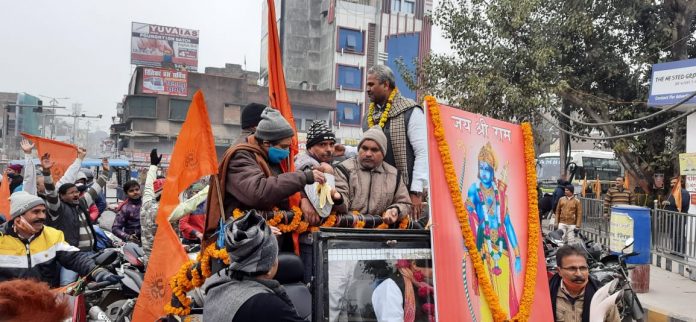 17 जनवरी 2021 प्रयागराज, राष्ट्रीय स्वयंसेवक संघ के कल्याणी नगर के द्वारा श्री राम मंदिर निर्माण के लिए धन संग्रह हेतु निकाली गई वाहन रैली में भाजपा महानगर अध्यक्ष श्री गणेश केसरवानी जी ने अपील करते हुए लोगों से कहा कि अयोध्या में भगवान श्री राम मंदिर का निर्माण लगभग 500 वर्षों लंबे अवधि के संघर्ष के बाद निर्माण हो रहा है