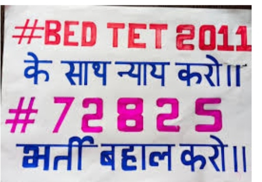 अचयनित अभ्यर्थी द्वारा ट्वीट मुहिम में प्रदेश सरकार को यह याद दिलाने की कोशिश की जा रही है कि 72825 शिक्षक भर्ती 2011 विज्ञापन पर 290 करोड़ फीस जमा होने के साथ-साथ कोर्ट से भर्ती के लिए लिबर्टी भी मिली हुई है ।सूत्रों की मानें तो भाजपा के लोग जब विपक्ष में थे तो उनका कहना था कि हमारी सरकार आएगी तो तुरंत आपको नियुक्ति दी जाएगी, परंतु 5 साल पूरे होने को है, लेकिन इन अभ्यर्थियों की सुध लेने वाला कोई नहीं है ।कुछ अभ्यर्थी तो ऐसे भी हैं ।जो अपनी आयु सीमा को लेकर भी चिंतित है क्योंकि विज्ञापन और अनावश्यक भर्ती प्रक्रिया के राजनीतिक खेल में वह पिस रहे हैं ।अभ्यर्थियों का कहना है कि हम कहां और किसके पास जाएं। गौरतलब है कि इस भर्ती प्रक्रिया की शुरुआत से अभी तक अभ्यर्थी ठगे गए हैं ।चाहे वह पूर्व सरकार हो या वर्तमान की। सरकार ने कई आंदोलनों के पश्चात भी कार्यवाही नहीं की।